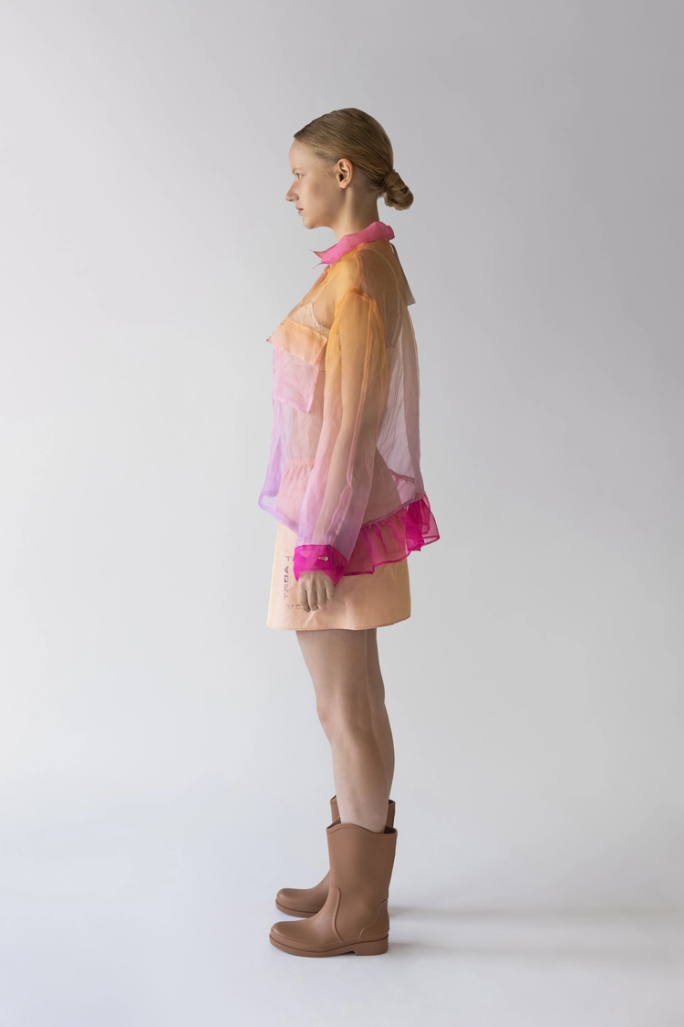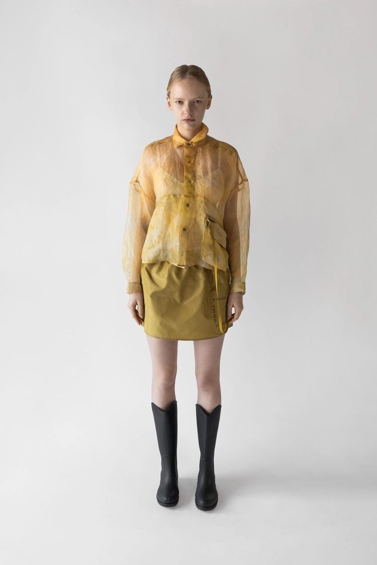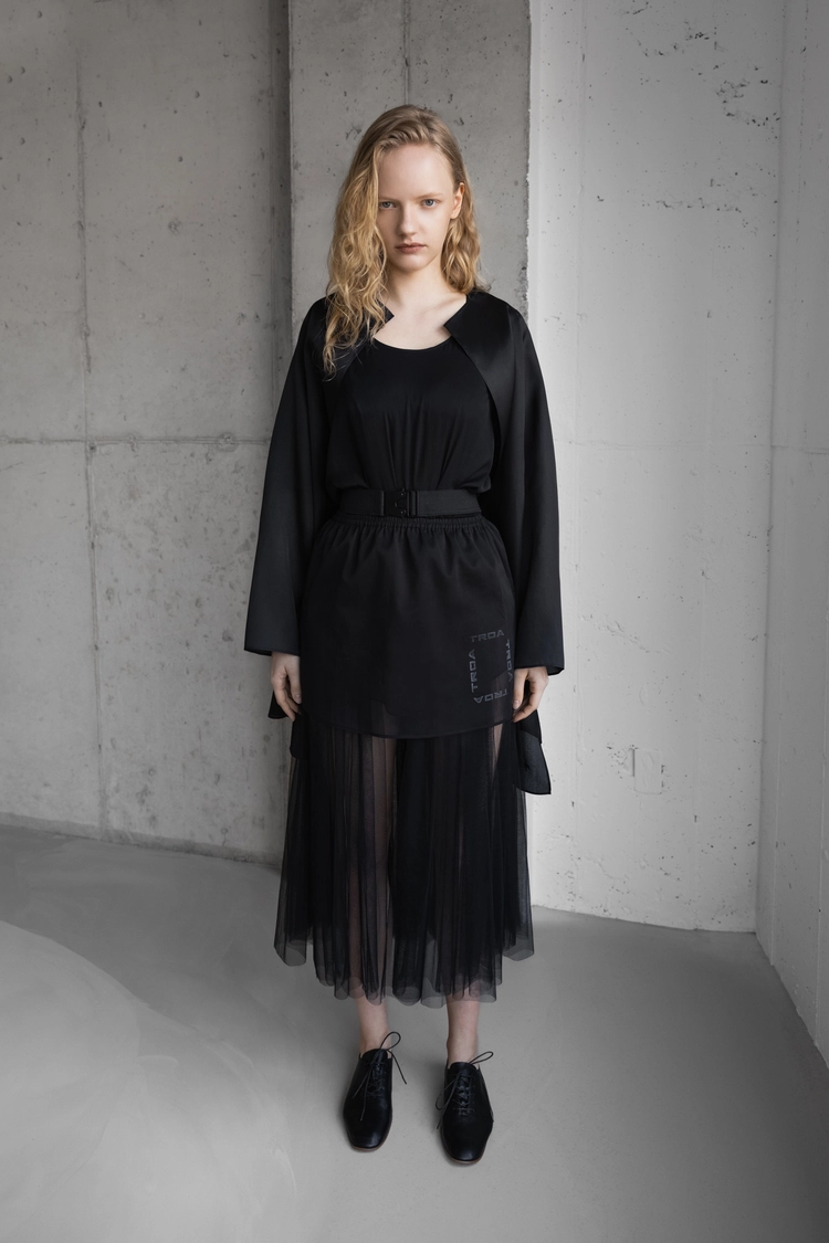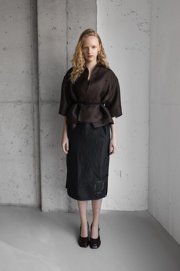 TROA SUMMER round neck top silk mini skirt sha belt skirt