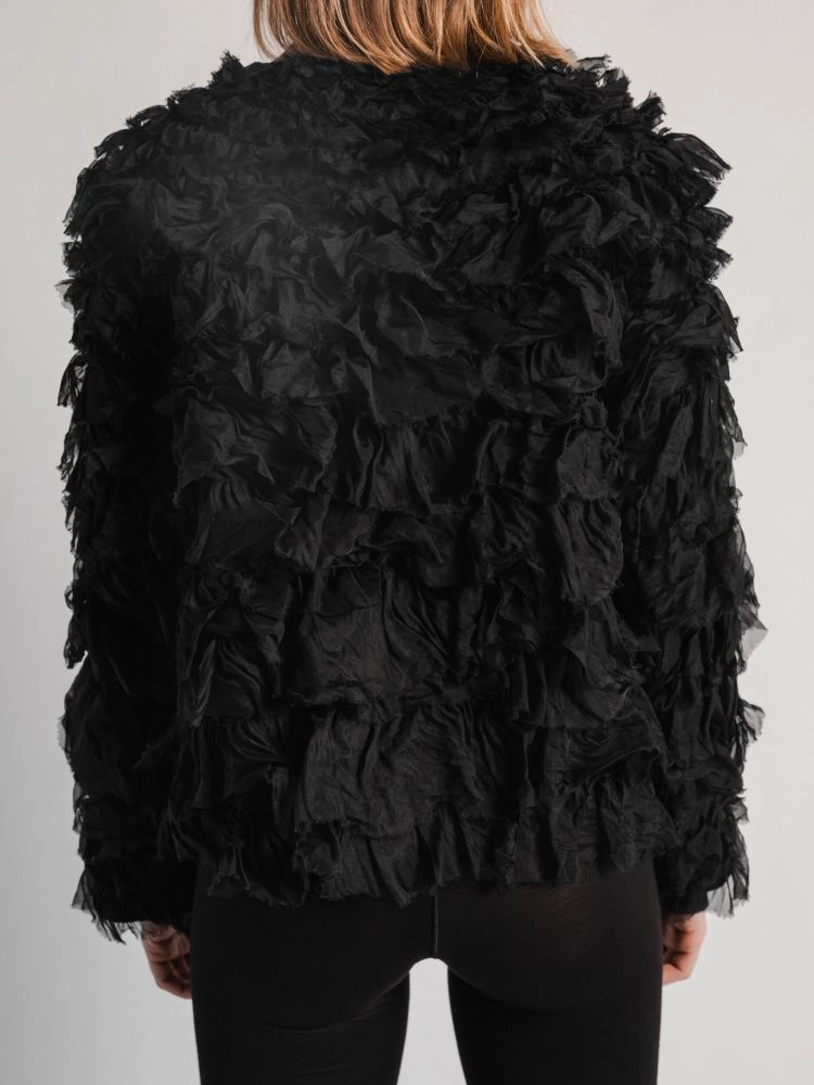 • 실크 캉캉 면: 고급스러운 100% 실크 소재로, 풍성한 캉캉 디테일이 돋보이며 우아한 룩을 완성합니다.