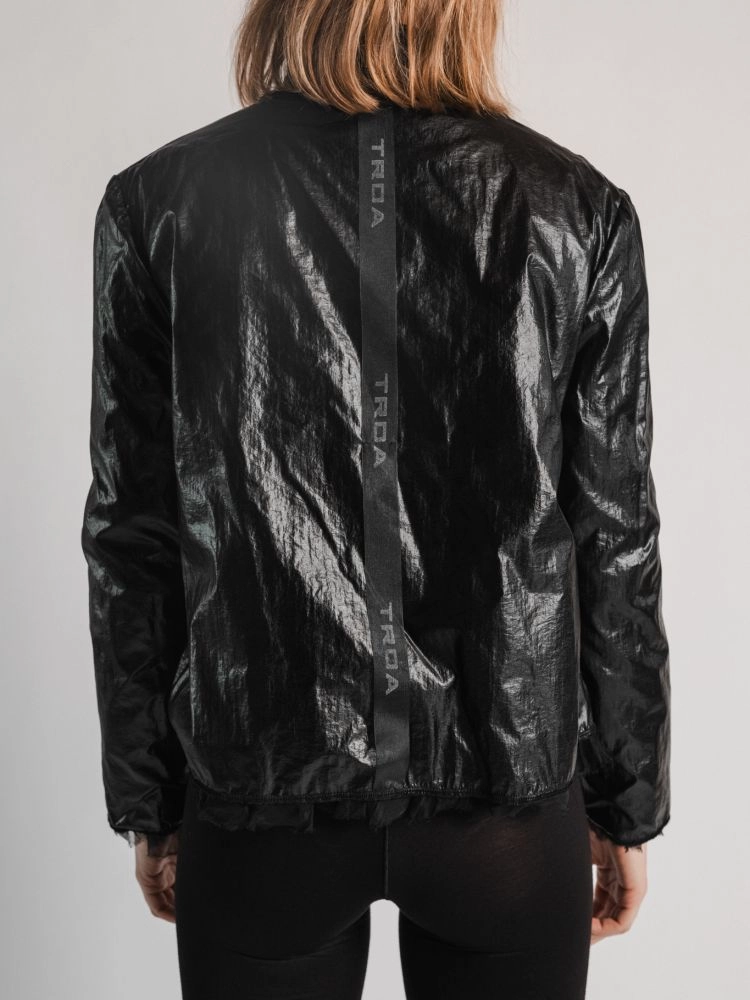 • 양면 디자인: 하나의 자켓으로 두 가지 스타일을 연출할 수 있습니다. 한쪽은 화려하고 볼륨감 있는 실크 캉캉 디자인, 반대편은 코팅된 나일론으로 스포티하고 실용적인 느낌을 제공합니다.